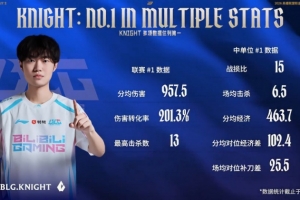 体育资讯4月16日讯 LPL第二赛段BLG对阵TES,赛前官方发布了BLG中单knight的数据:多项第一!